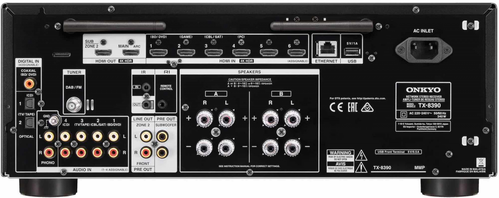 • 6 HDMI inputs and 2 outputs (Main [ARC], Sub/Zone 2)