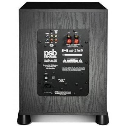 Активный сабвуфер, фазоинвертер Bass Reflex, мощность 280 Вт, динамик — полипропилен 10" (254 мм), частота 28-150 Гц, частота раздела кроссовера 50-150 Гц. Передний регулятор громкости и регулятор частот, фазовый выключатель, автоматическое включение/выключение, вход LFE